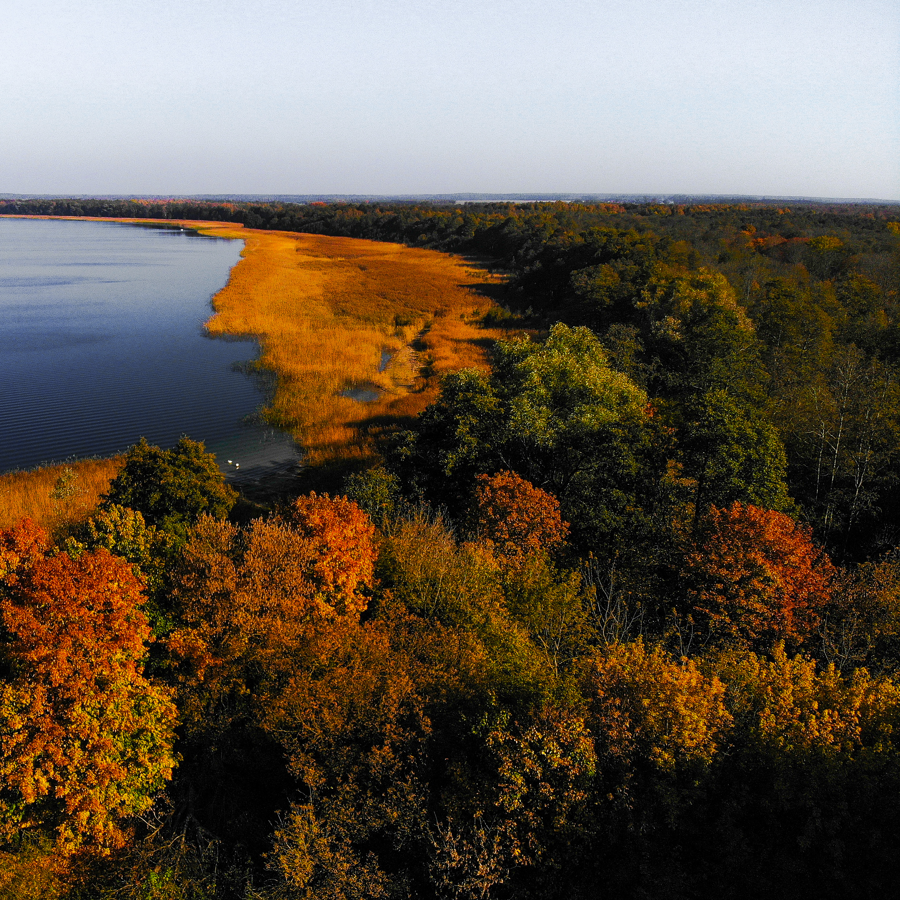 Kolorowa jesień nad brzegiem jeziora, Giżycko